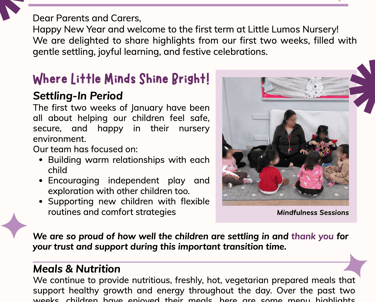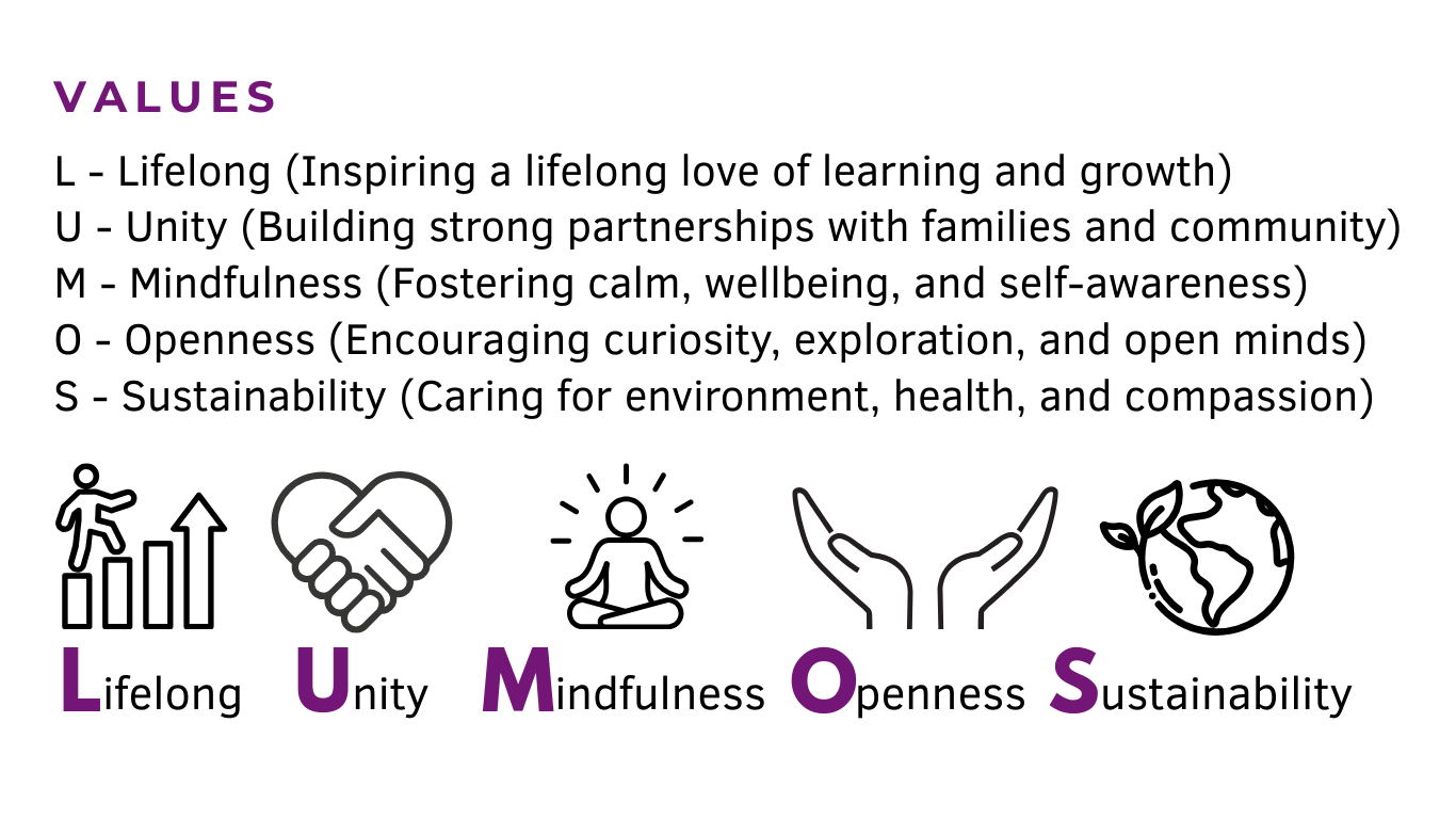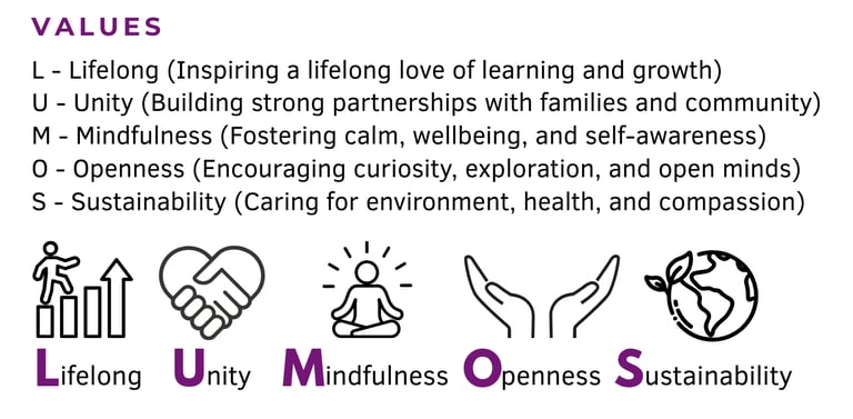 Through play-based learning and caring guidance, we nurture curiosity, confidence, and kindness - fostering a lifelong love of learning. In partnership with families, we help each child glow in their own unique way.