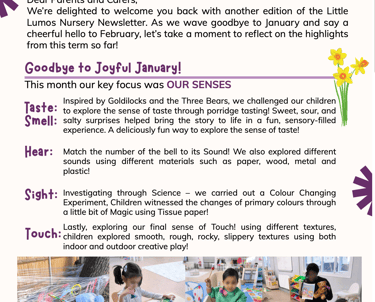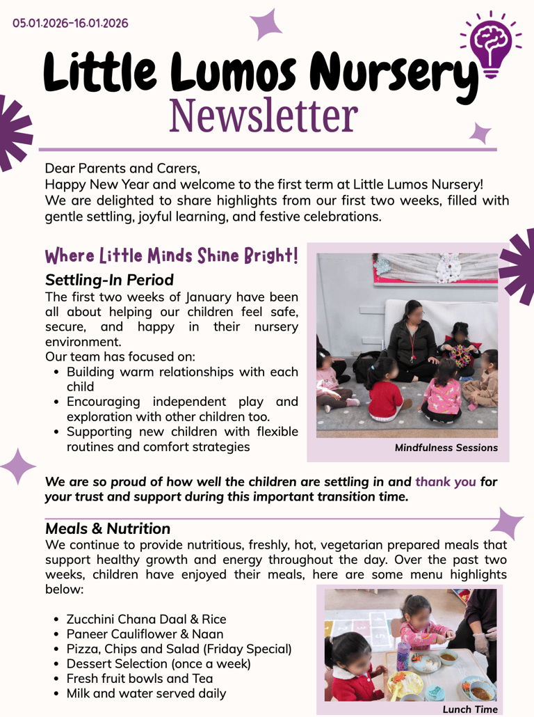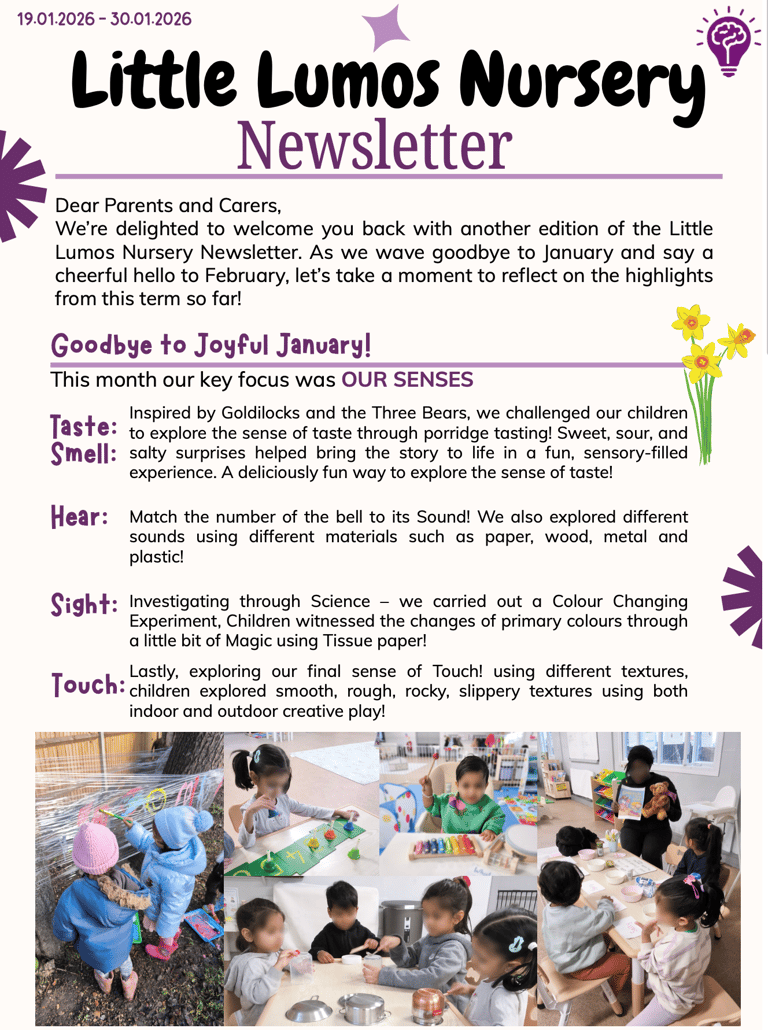 At Little Lumos Nursery, we believe every child is a spark of potential waiting to shine. Our mission is to create a safe, inclusive, and joyful space where children explore, imagine, and grow.
